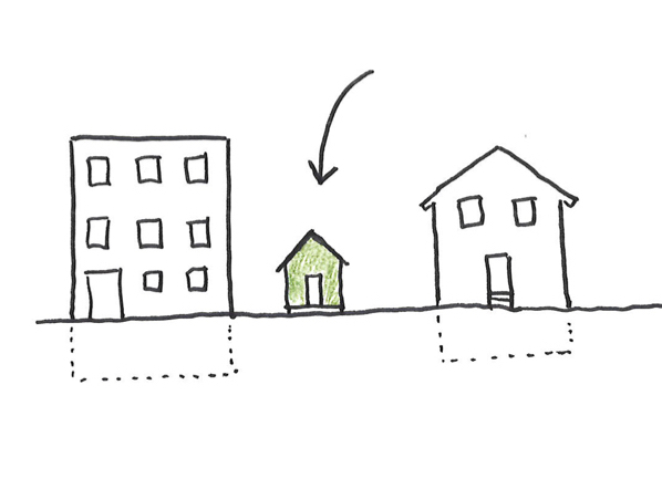 Les habitats légers peuvent facilement être posés entre des constructions et arbres existants.